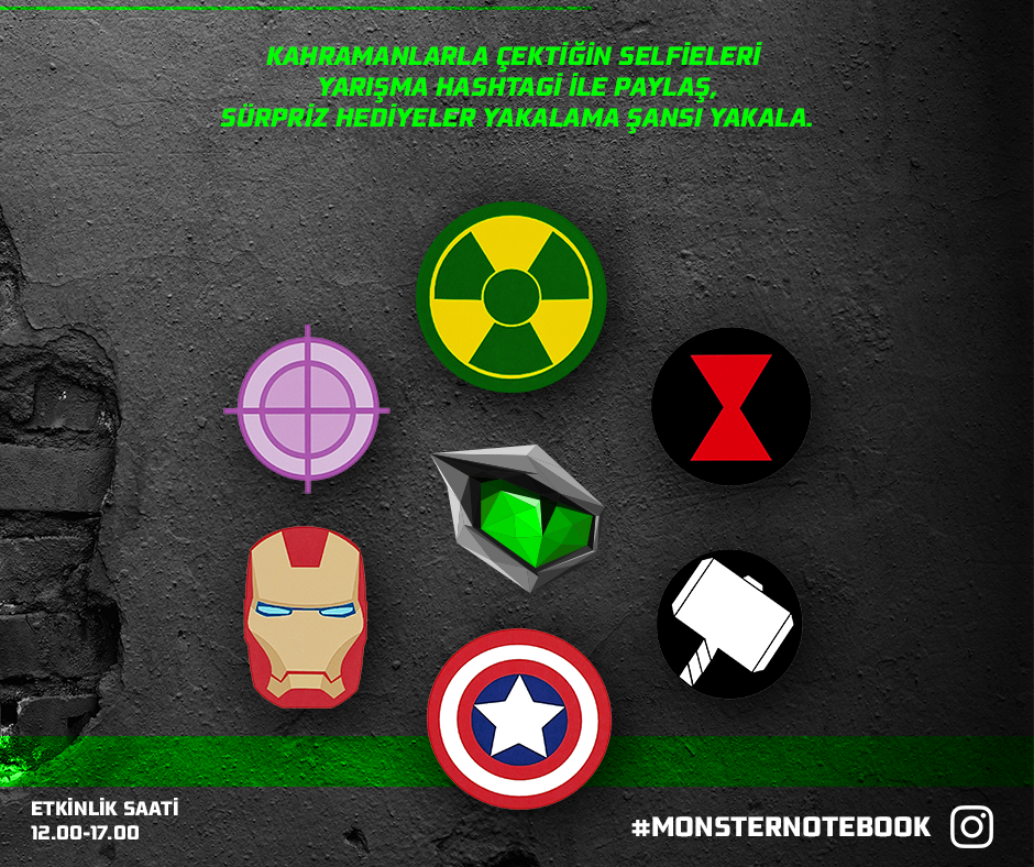 Ayrıca etkinlik boyunca cosplayerlar ile çektikleri fotoğrafları #monsternotebook etiketiyle Instagram’da paylaşan katılımcılar, Monster’dan sürpriz hediyeler kazanma şansını yakalayacaklar. Hediye kazanmak için paylaşımın yapıldığı Instagram hesabının herkese açık olması gerekiyor.