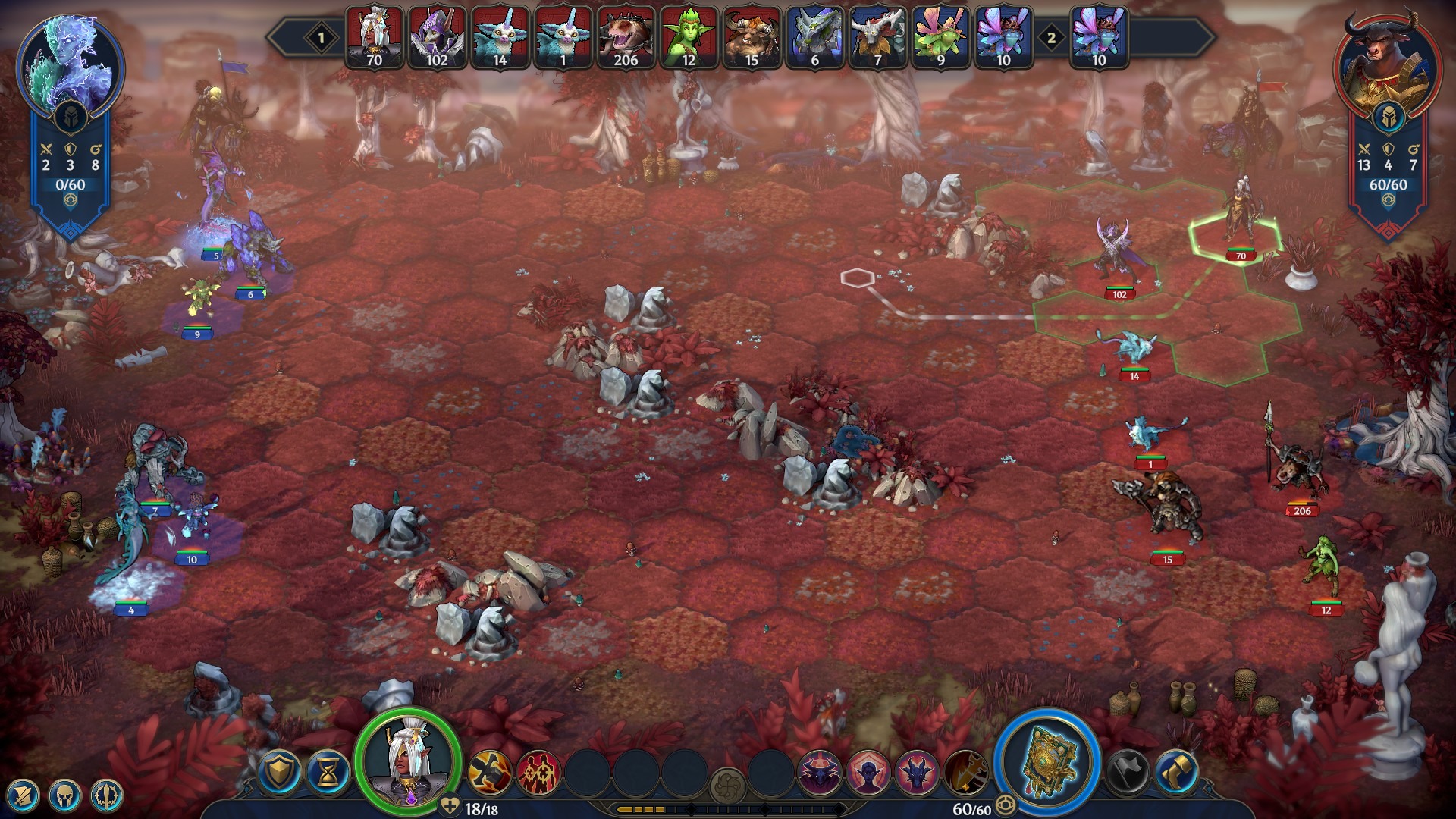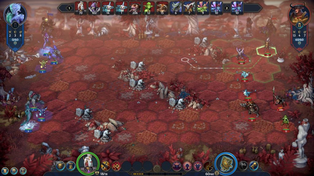 Altı fraksiyonun her biri; Temple, Necropolis, Grove, Hive, Schism ve Dungeon, kendine özgü bir kimlik ve strateji anlayışı sunuyor. Üstelik her fraksiyonda 18 kahraman seçeneği ve birimlere yönelik çift kollu yükseltme sistemi, deneyimi kişiselleştirmenin kapılarını ardına kadar aralıyor. Savaşlar altıgen bir alanda, inisiyatif sırasına göre şekilleniyor; odak mekanik, güçlü birim becerilerini ve kahraman büyülerini aktive etmenin anahtarı olarak devreye giriyor. Sisteme hakim olmak zaman alıyor; ancak öğrenme eğrisi sizi hiçbir zaman dışlamıyor.