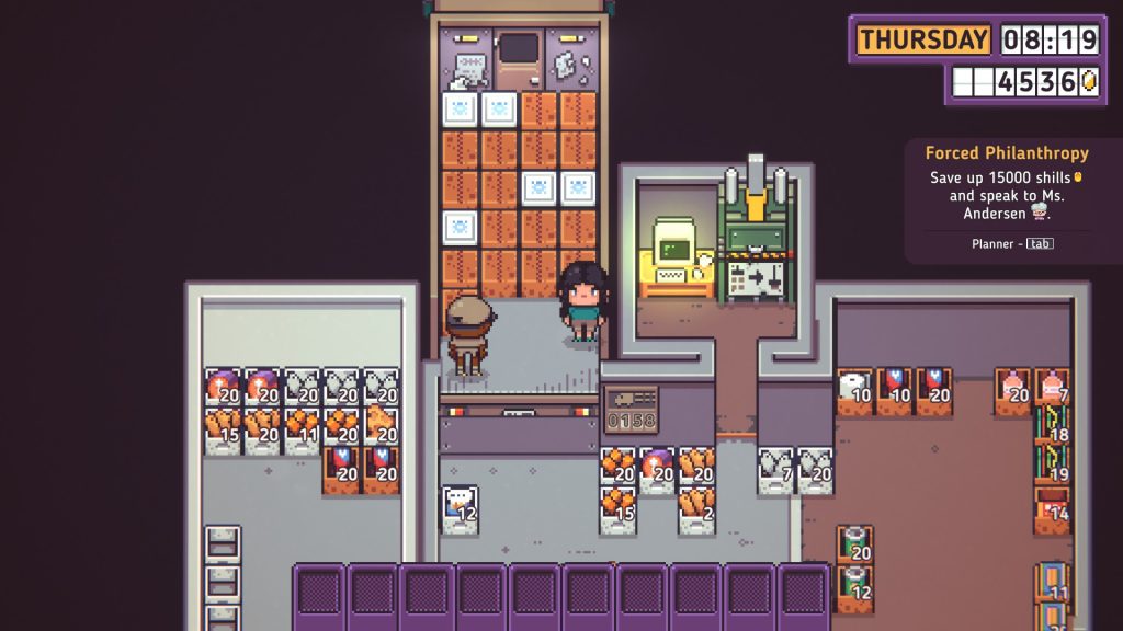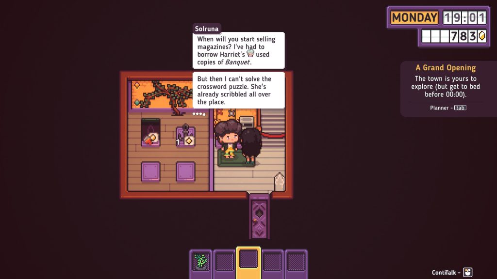 Öyleyse Discounty’i tavsiye ederim. Öncelikle oyunun Stardew Valley’nin aksine süper marketle savaşan küçük ve yerli esnaf yerine o küçük ve yerli esnafın başına dert olan süper market gözünden hikayeyi anlatması yer yer duygusal sahnelere sebep oluyor. Kendimizi bu tarz cozy-casual simülatör oyunlarında sıkça gördüğümüz gün döngüsünde gece gündüz çalışır ve kasaba halkının yardımına koşar buluyoruz. Bunu yaparken de gerçek hayatta zaman su gibi akıp gidiyor.